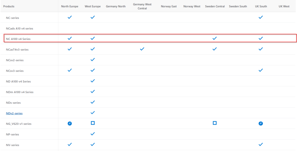 Moreover, LLMs can also run on a VM family designed specifically for Artificial Intelligence / Machine Learning (AI/ML) workloads. Other VM families are tailored for virtual desktop (VD) applications. The table below summarises the common Azure GPU VM families. If you’re planning to run an LLM, your focus should be on those designed for AI/ML.